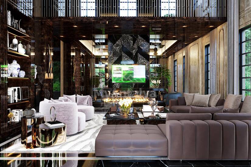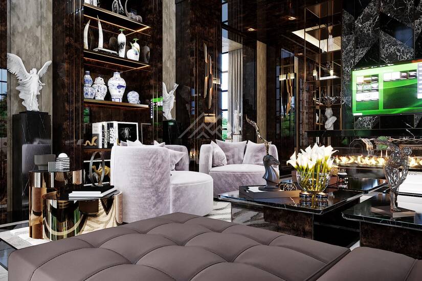 - потолок с точечным и led освещением