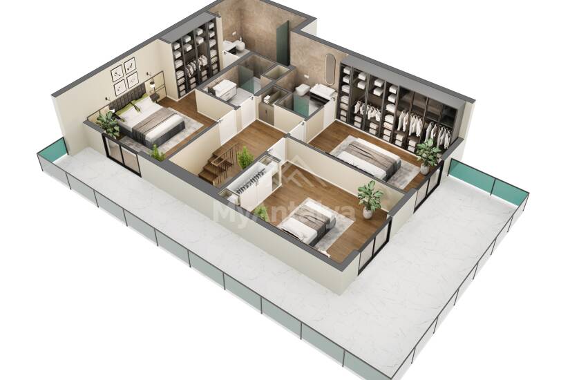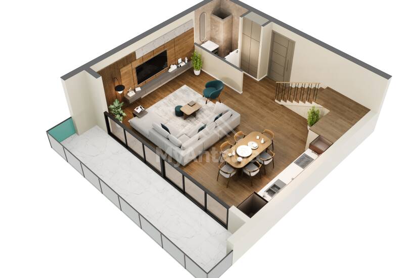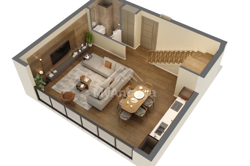 - полы изготовлены из высококачественной керамики и ламинат-паркета