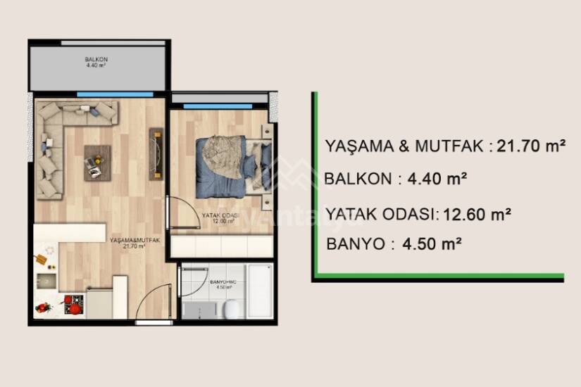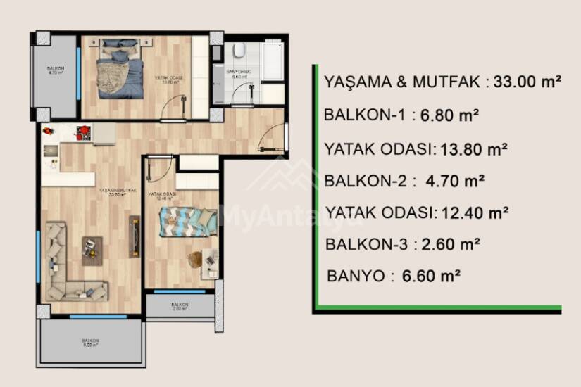 Комнат: 1+1, 2+1