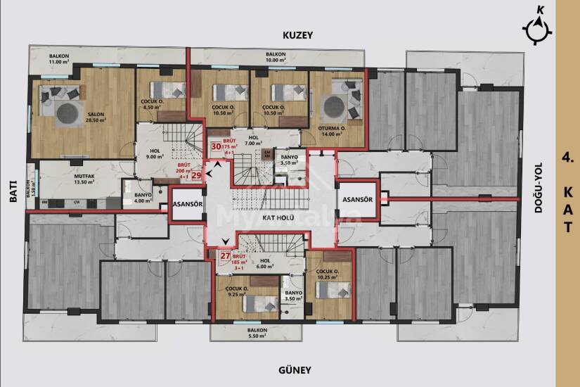 Комнат: 1+1, 2+1, 4+1